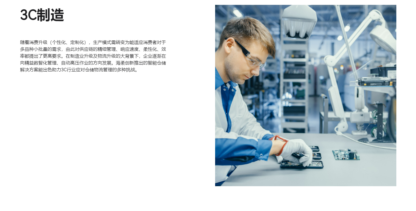 海柔创新推出的智能仓储解决方案能出色助力3C行业应对仓储物流管理的多种挑战。 自动化存储 动态库位持续赋能 系统AI智能调度 可视化数据化[详细]